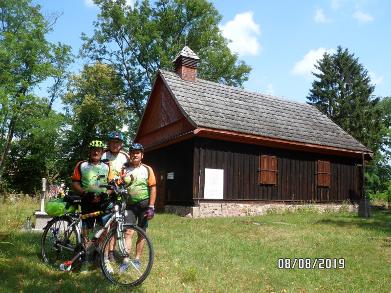 Z samego rana w środę 07 sierpnia 2017 r. o godz. 07.27 na kaliskim dworcu w trzech Henryk, Adam i Tomasz z rowerami zapakowaliśmy się do pociągu, który dowiózł nam do Warszawy (po drodze małe bo półtoragodzinne opóźnienie spowodowane awarią pociągu jadącego przed nami) a tam przesiadka do kolejnego pociągu. Wysiadamy w miejscowości Mrozy na trasie do Siedlec i tam już wsiadamy na nasze rowerowe rumaki z bagażami i ruszamy. Na początek w samych Mrozach odwiedzamy tramwaj konny (wąskotorowa linia tramwaju konnego), który wykorzystano w jednym z odcinków seriali „Ranczo”. Robimy małe kółeczko kręcąc jeszcze tego dnia niecałe 40 km i odwiedzamy wieś Sinołęka gdzie odwiedzamy drewniany kościółek z 1739 roku. Dzień kończymy w Kałuszynie, gdzie mamy zaplanowaną bazę noclegową na kilka najbliższych dni. W Kałuszynie odwiedzamy jeszcze pomnik Złotego Ułana.