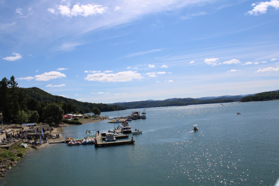 Więc ruszyliśmy dalej do następnego przystanku a była to Solina i znana w całej Polsce zapora nad Jeziorem Solińskim. Jest to największa budowla tego typu w Polsce, prawie 82 m wysokości i 664 m długości, oczywiście przespacerowaliśmy się po zaporze i na pewno robi wrażenie (tym bardziej, że wcześniej mieliśmy okazję także zwiedzić drugą pod tym względem w Polsce – Zaporę Pilchowice na rzece Bóbr).
