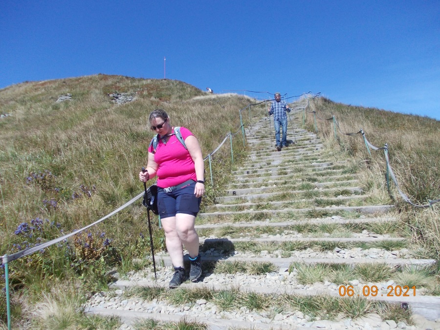 W czwartek po śniadaniu z Ustrzyk Górnych ruszamy na następną Połoninę czyli Połoninę Caryńską i jak zawsze po zakupieniu biletu wstępu do Bieszczadzkiego Parku Narodowego trasa zaczyna ostro wspinać się w górę a my razem z nią. Po kilku godzinach wspinaczki i marszu meldujemy się na szczycie Połoniny Caryńskiej (1234 m n.p.m.), po drodze wchodzimy także na drugi jej szczyt (1297 m n.p.m.) i jak w dniach poprzednich pomimo zmęczenia podziwiamy piękno naszych Bieszczad. Teraz ponownie strome zejście na Przełęcz Wyżniańską i przeskok na drugą stronę do Bacówki pod Małą Rawką, gdzie postanowiliśmy trochę odpocząć przy naleśnikach z jagodami i żurku. Wracamy na parking i do Ustrzyk Górnych.