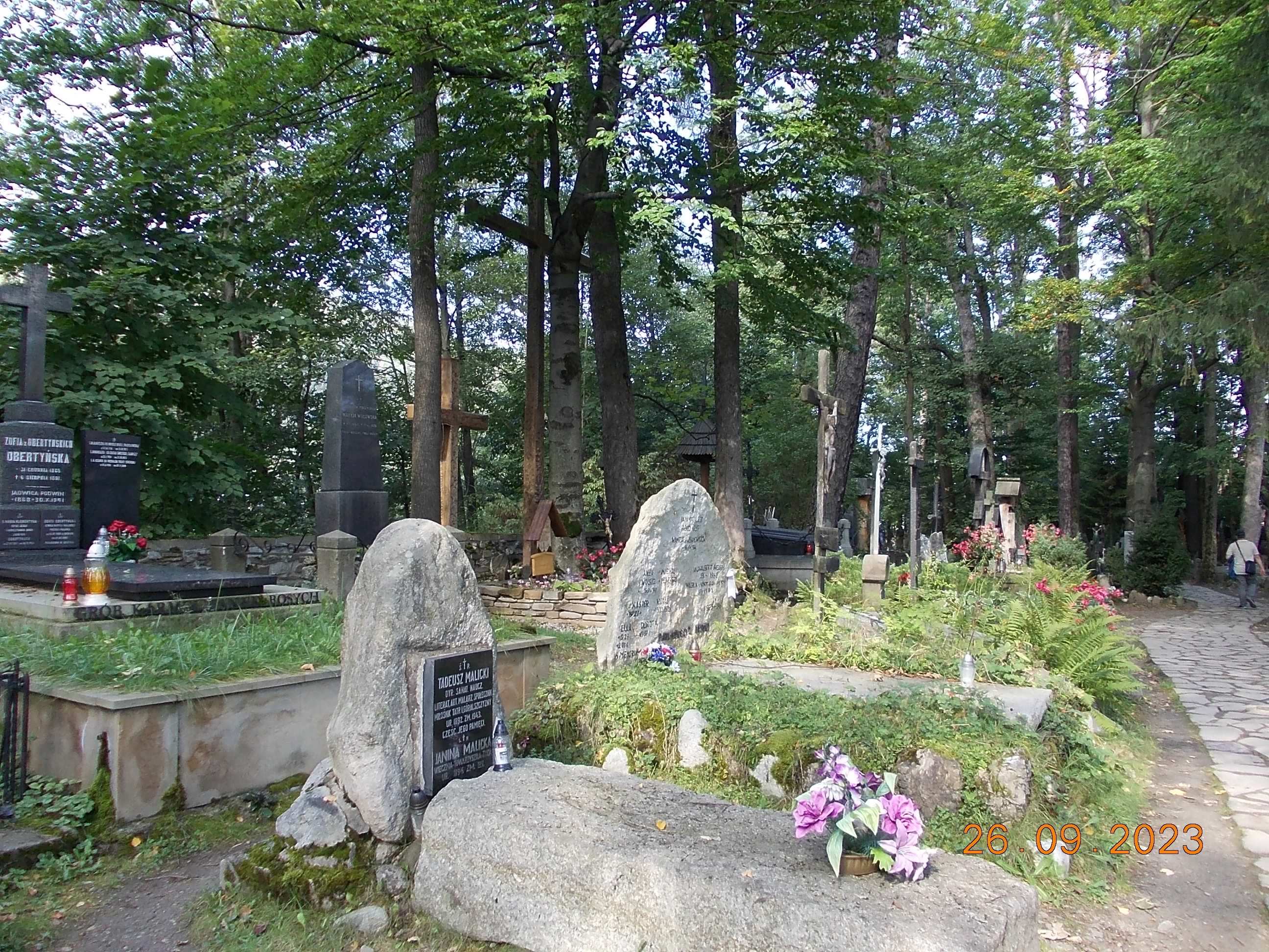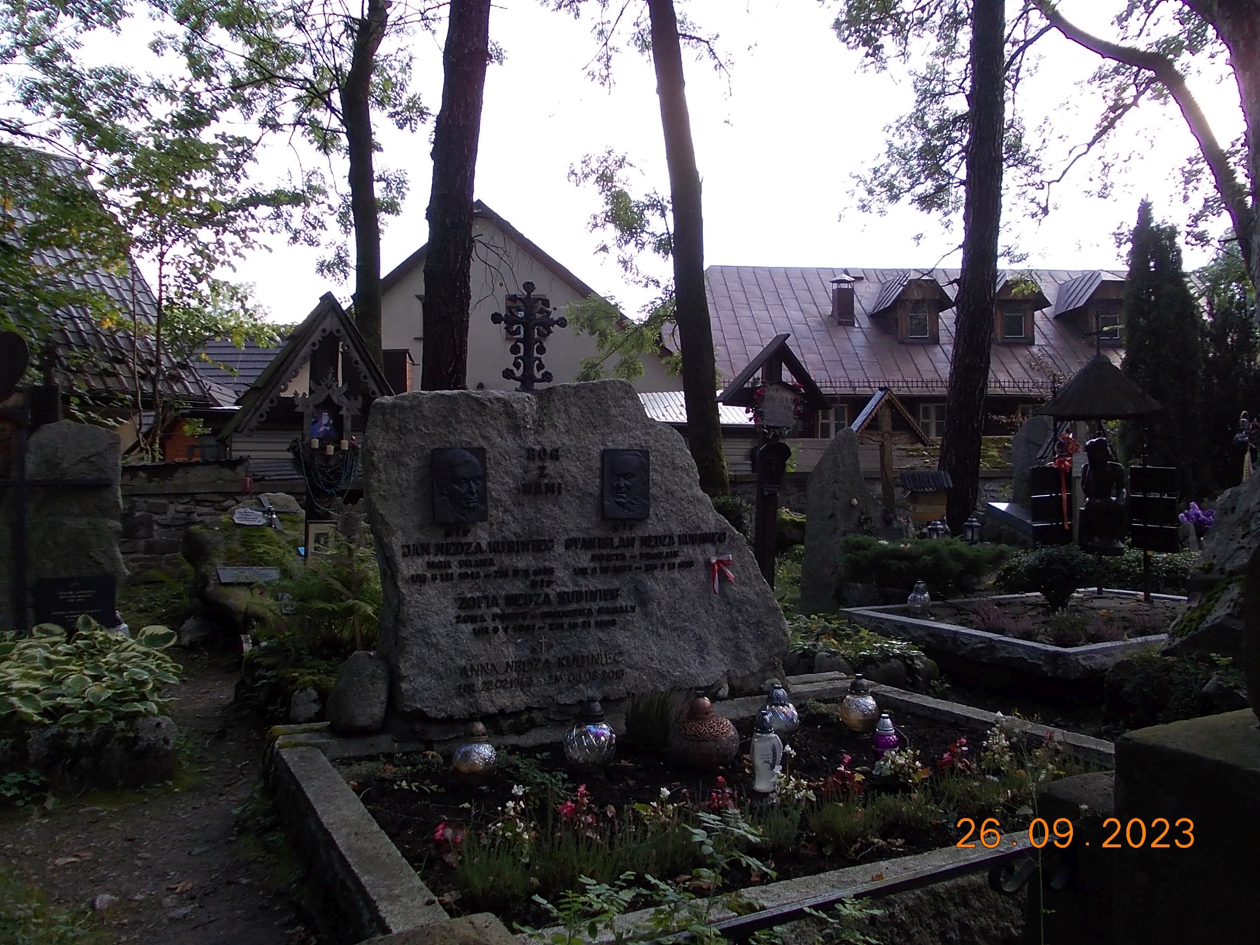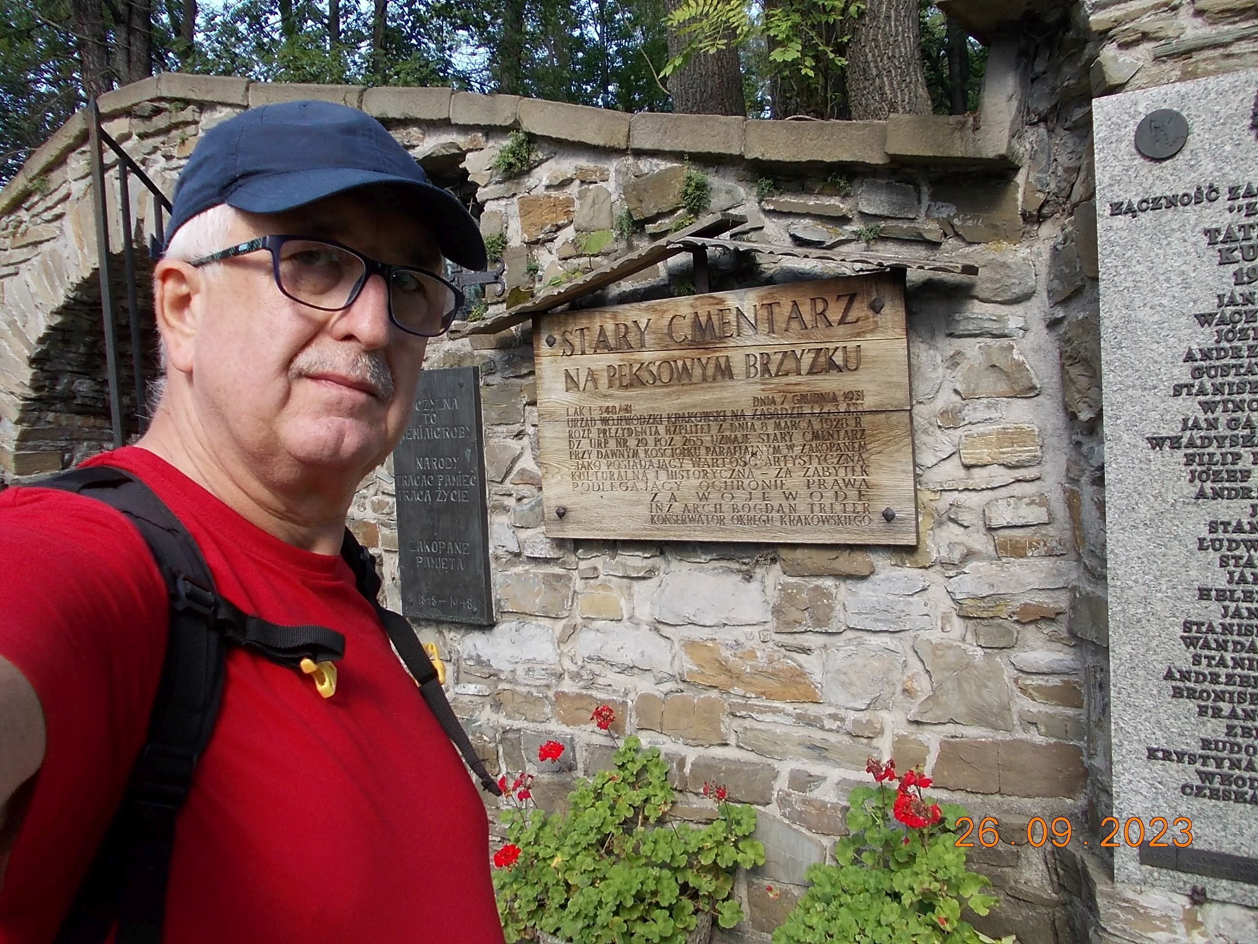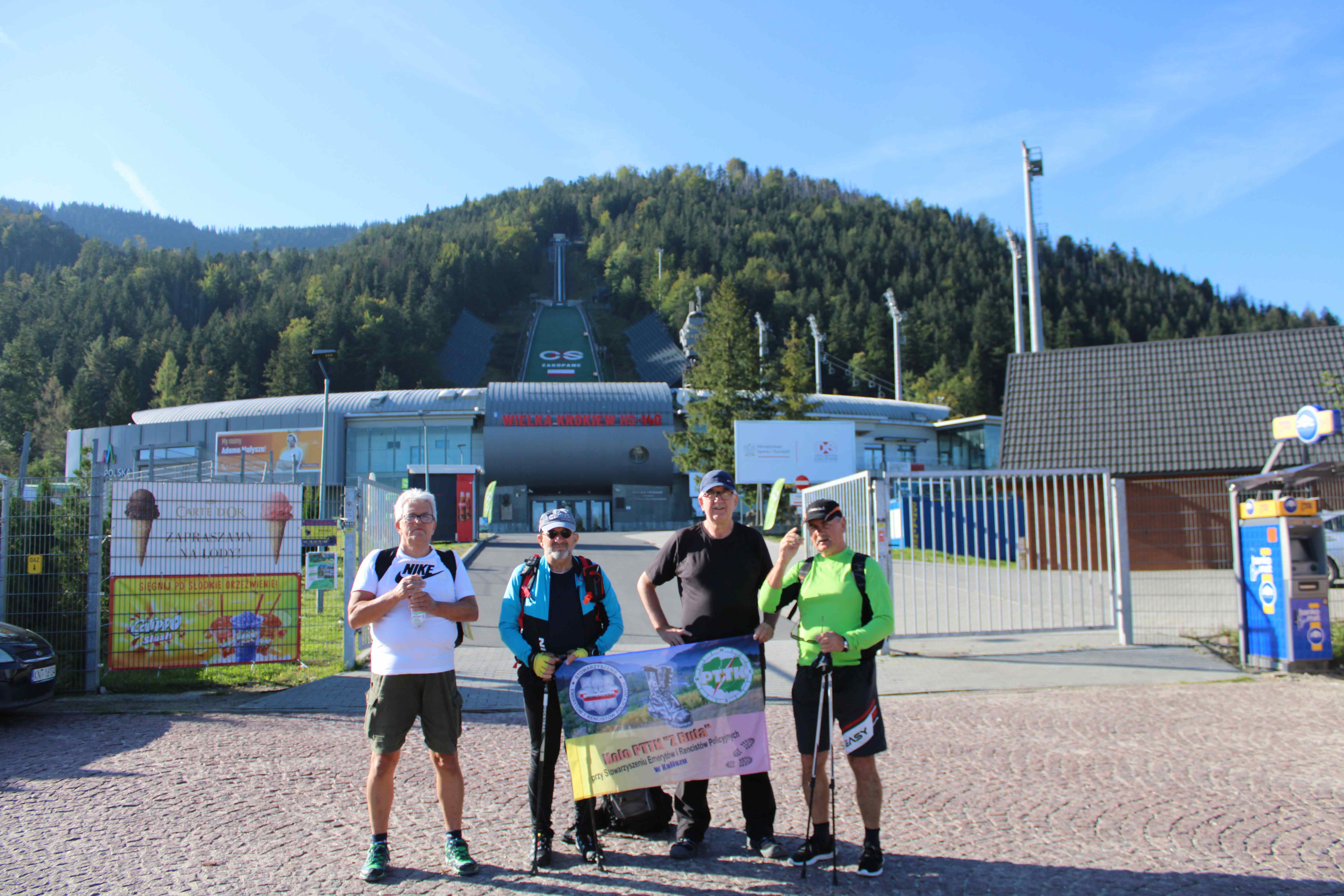 We wtorek już całą drużyną od rana spotkaliśmy się w Zakopanem w Ośrodku „Geovita” w naszej bazie rajdowej i po wypakowaniu bagaży ruszyliśmy przez Krupówki na Gubałówkę, dołączyły do nas dwie panie czyli moja żona Bożena oraz koleżanka Lidka ze Strzelec Opolskich, dojeżdżające do nas z Bukowiny Tatrzańskiej. I jak to bywa część poszła pieszo na Gubałówkę szlakiem czarnym ale też część podjechała kolejką jako atrakcją. Droga powrotna to żółty szlak i pod wyciągiem na Polanie Szymaszkowiej powrót na dół do Zakopanego a tu jeszcze wybraliśmy się do drewnianego kościoła MB Częstochowskiej oraz spacer po Cmentarzu Zasłużonych na Pęskowym Brzysku. Można tu odnaleźć groby naszych sportowców jak Stanisław Marusarz, Helena Marusarzówna, poeta Kornel Makuszyński, Władysław Orkan, Kazimierz Przerwa- Tetmajer a także innych znanych zakopiańczyków Tytus Chałbiński, Sabała czy też symboliczny grób Stanisława Witkiewicza. Naprawdę warto poświęcić krótką chwilę na zadumę i zobaczyć te pięknie wykonane nagrobki, kapliczki góralskie krzyże czy rzeźbione motywy podhalańskie. W drodze do ośrodka oczywiście zdjęcie na tle napisu ZAKOPANE a także przy pomniku Józefa Kurasia „Ognia”.