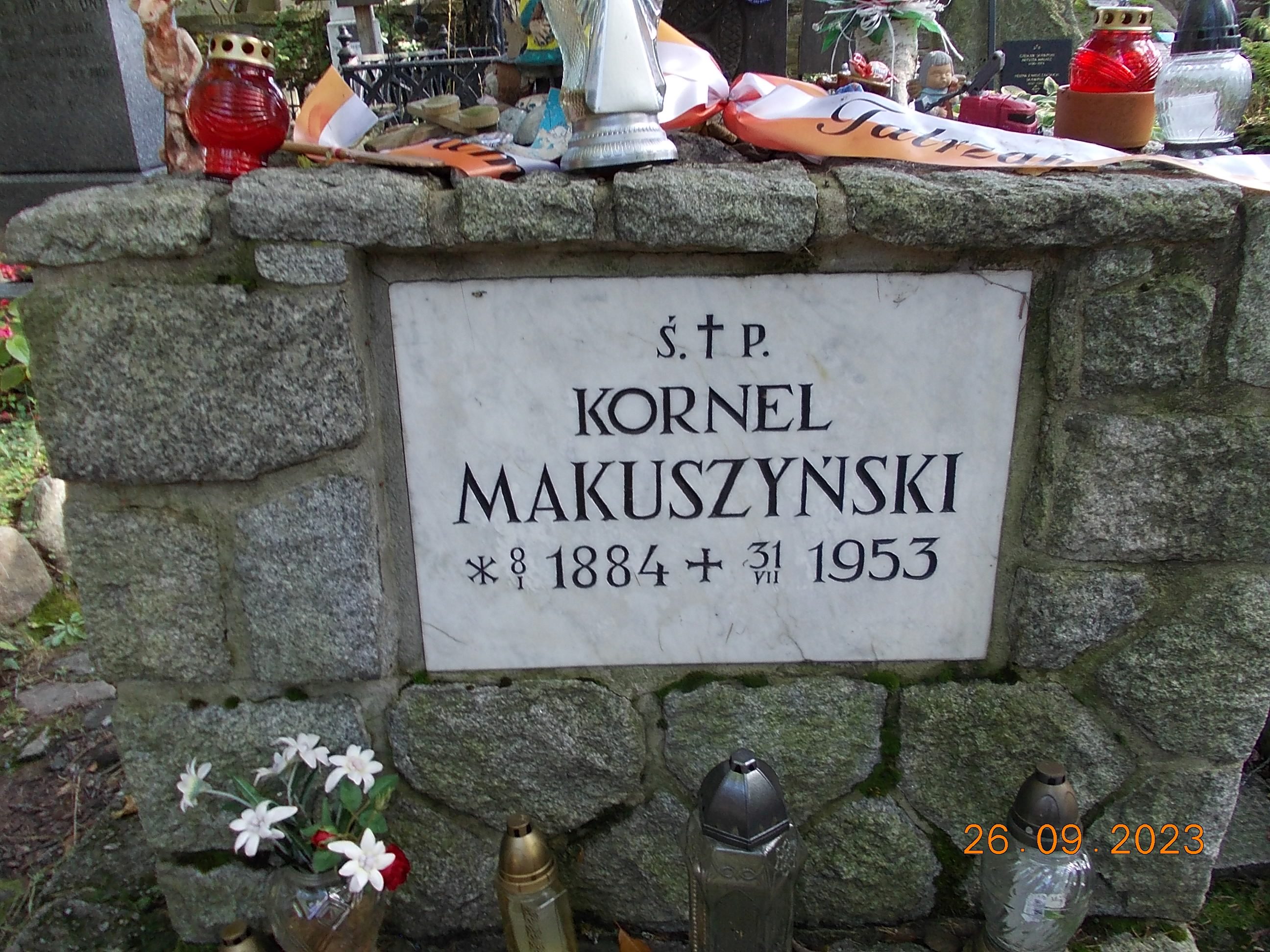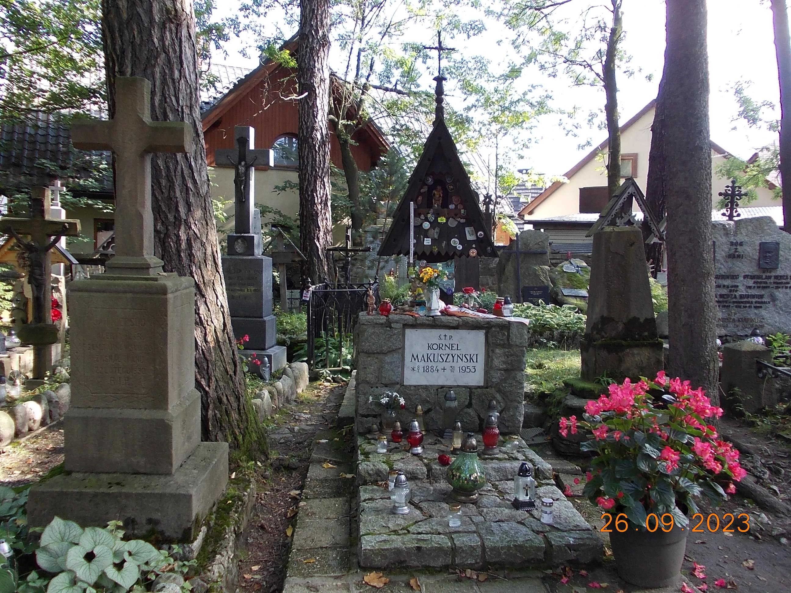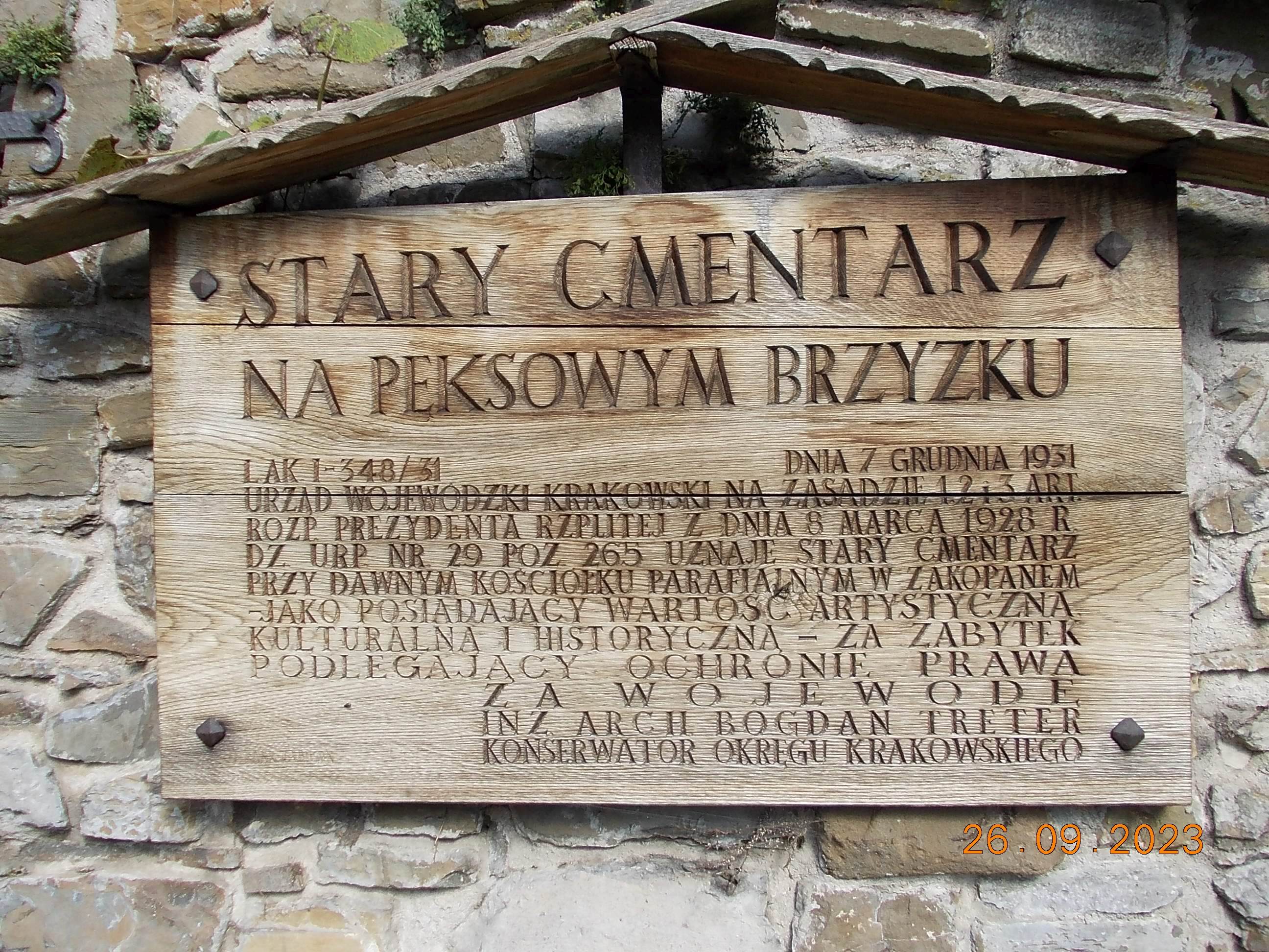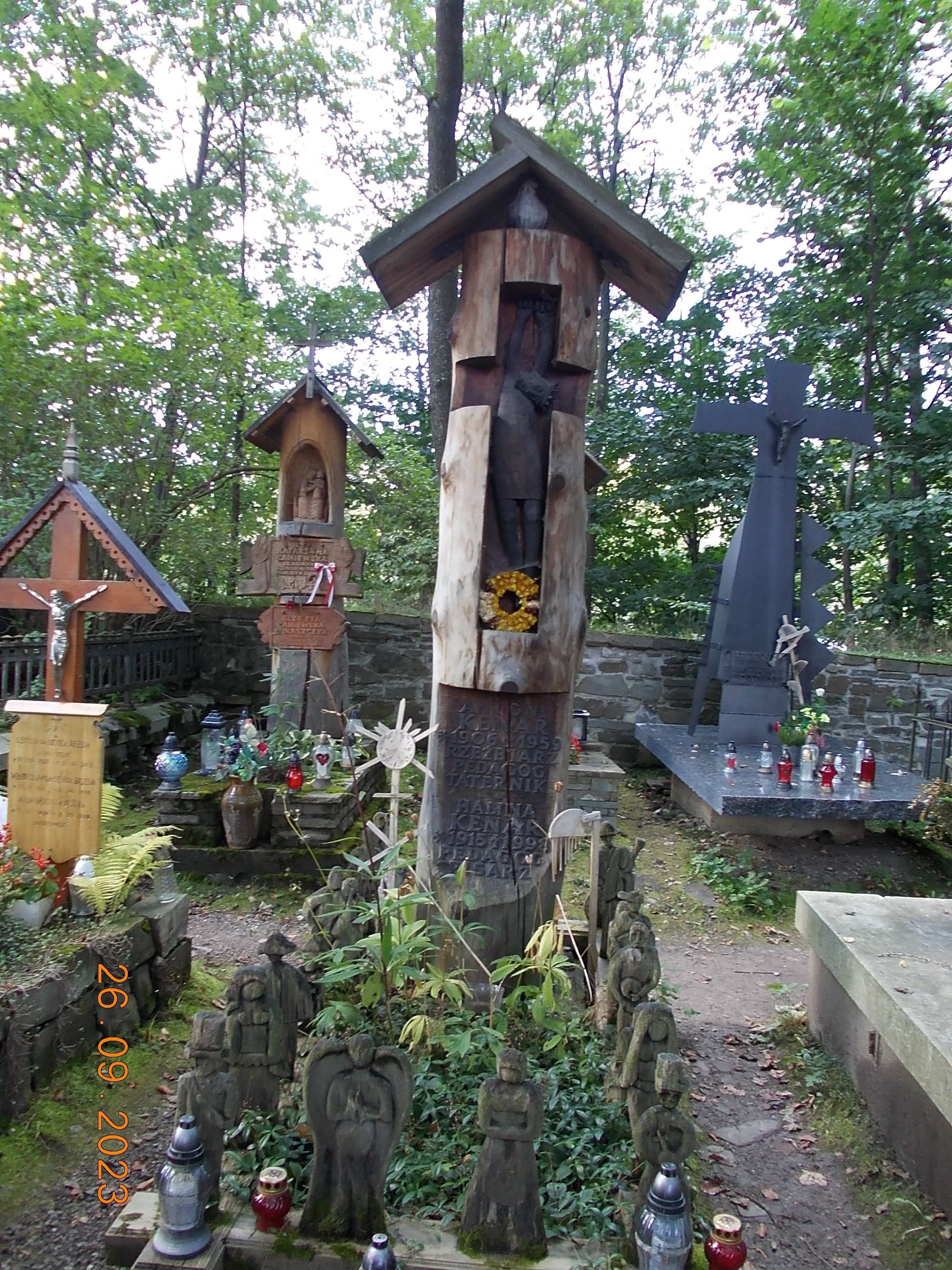 We wtorek już całą drużyną od rana spotkaliśmy się w Zakopanem w Ośrodku „Geovita” w naszej bazie rajdowej i po wypakowaniu bagaży ruszyliśmy przez Krupówki na Gubałówkę, dołączyły do nas dwie panie czyli moja żona Bożena oraz koleżanka Lidka ze Strzelec Opolskich, dojeżdżające do nas z Bukowiny Tatrzańskiej. I jak to bywa część poszła pieszo na Gubałówkę szlakiem czarnym ale też część podjechała kolejką jako atrakcją. Droga powrotna to żółty szlak i pod wyciągiem na Polanie Szymaszkowiej powrót na dół do Zakopanego a tu jeszcze wybraliśmy się do drewnianego kościoła MB Częstochowskiej oraz spacer po Cmentarzu Zasłużonych na Pęskowym Brzysku. Można tu odnaleźć groby naszych sportowców jak Stanisław Marusarz, Helena Marusarzówna, poeta Kornel Makuszyński, Władysław Orkan, Kazimierz Przerwa- Tetmajer a także innych znanych zakopiańczyków Tytus Chałbiński, Sabała czy też symboliczny grób Stanisława Witkiewicza. Naprawdę warto poświęcić krótką chwilę na zadumę i zobaczyć te pięknie wykonane nagrobki, kapliczki góralskie krzyże czy rzeźbione motywy podhalańskie. W drodze do ośrodka oczywiście zdjęcie na tle napisu ZAKOPANE a także przy pomniku Józefa Kurasia „Ognia”.