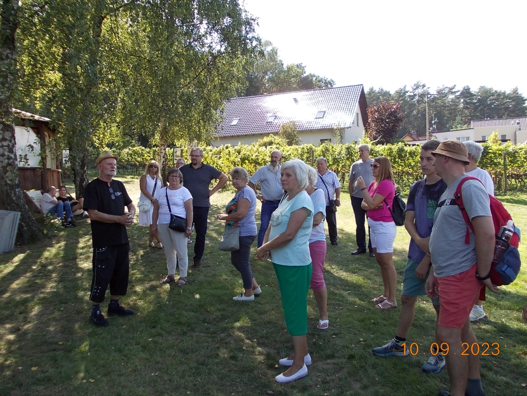 Tak jak zaplanowaliśmy w dniu 10 września 2023 roku o godz. 06.00 z Kalisza grupa członków oraz sympatyków Stowarzyszenia Emerytów i Rencistów Policyjnych w Kaliszu wyruszyła autokarem na wycieczkę krajoznawczo-turystyczną do Zielonej Góry w ramach odbywających się dni Zielonej Góry I corocznego Winobrania. Z uwagi na zmiany w zielonogórskim winobraniu także my musieliśmy dokonać w naszym planie korekty i tak zamiast pochodu w korowodzie zdecydowaliśmy się na spacer po Zielonej Górze w Przewodnikiem PTTK a następnie odwiedziny i zwiedzanie winnicy w rejonie Zielonej Góry. Po godz. 10.00 dojeżdżamy na parking przy Zielonogórskiej Palmiarni gdzie oczekiwała na nas Pani Mariola Szydło /nasza Przewodnik z ramienia PTTK Zielona Góra w przepięknym kapeluszu/. Po przywitaniu i ustaleniu trasy ruszamy za naszą Panią Przewodnik na zwiedzanie Zielonej Góry.
