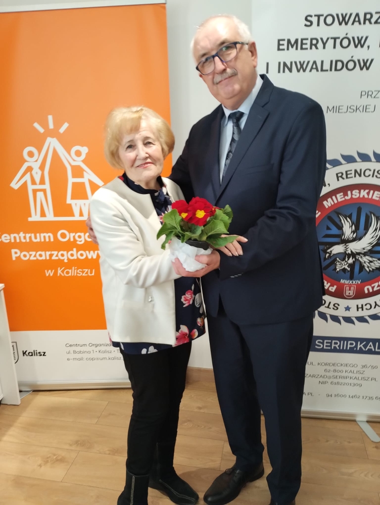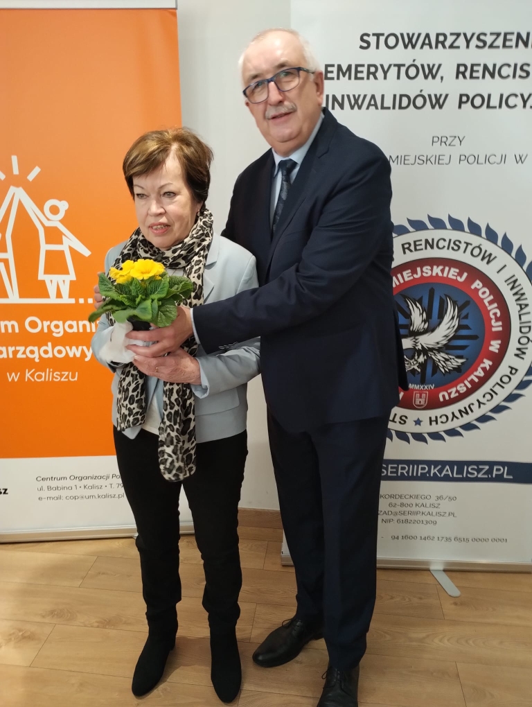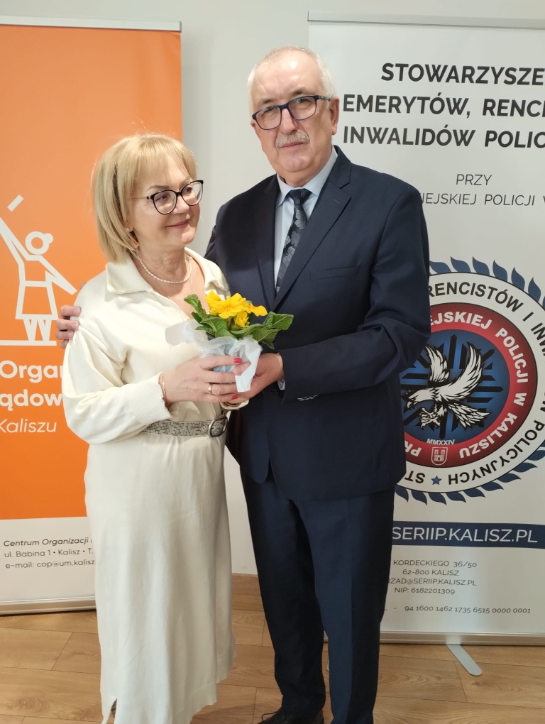 W dniu 06 marca 2025 roku w Centrum Organizacji Pozarządowych w Kaliszu odbyło się spotkanie członków Stowarzyszenia Emerytów, Rencistów i Inwalidów Policyjnych przy Komendzie Miejskiej Policji w Kaliszu, w trakcie którego świętowali wyjątkowe święto czyli Dzień Kobiet. Spotkanie w imieniu Zarządu rozpoczął prezes Adam Wojcieszak, wręczając wszystkim Paniom kwiaty. Życzenia zdrowia, wszelkiej pomyślności, pogody ducha oraz dużo uśmiechu na co dzień Paniom złożyli zaproszeni goście Mateusz Podsadny Wiceprezydent Miasta Kalisza oraz mł. Insp. Roman Bruss Komendant Miejski Policji w Kaliszu. W spotkaniu uczestniczyła również Małgorzata Kraszkiewicz Przewodnicząca Kaliskiej Rady Seniorów.