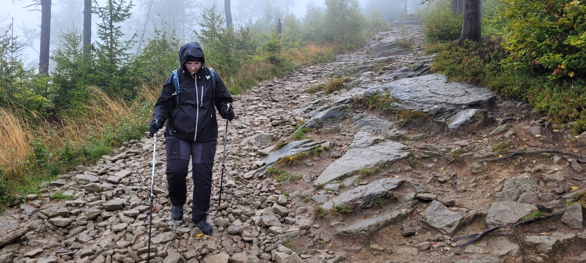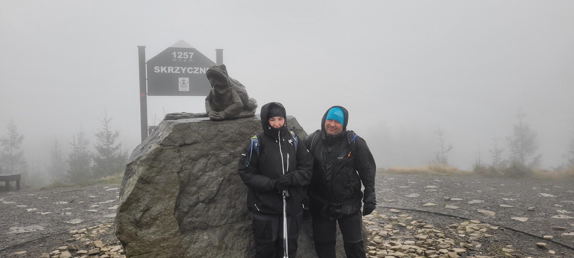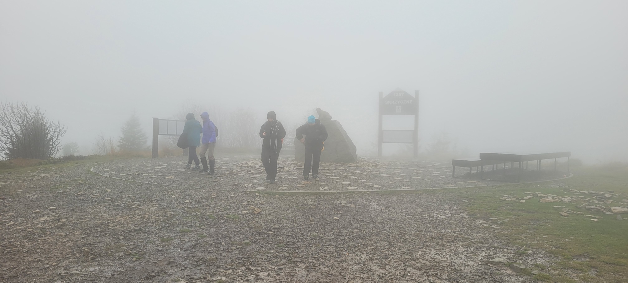 W środę od rana podstawione autobusy wywiozły uczestników rajdu w OW Panorama na Przełęcz Salmopolską (Biały Krzyż), skąd ruszyliśmy szlakiem czerwonym na Malinowską Skałę (ostre podejście, w deszczu oraz silnym wietrze nie było przyjemności spacerowania po górach), dalej szlakiem zielonym do schroniska na Skrzycznem (najwyższy szczyt Beskidu Śląskiego) i  zejście do Szczyrku szlakiem zielonym lub niebieskim. Długość trasy to około 15 km.