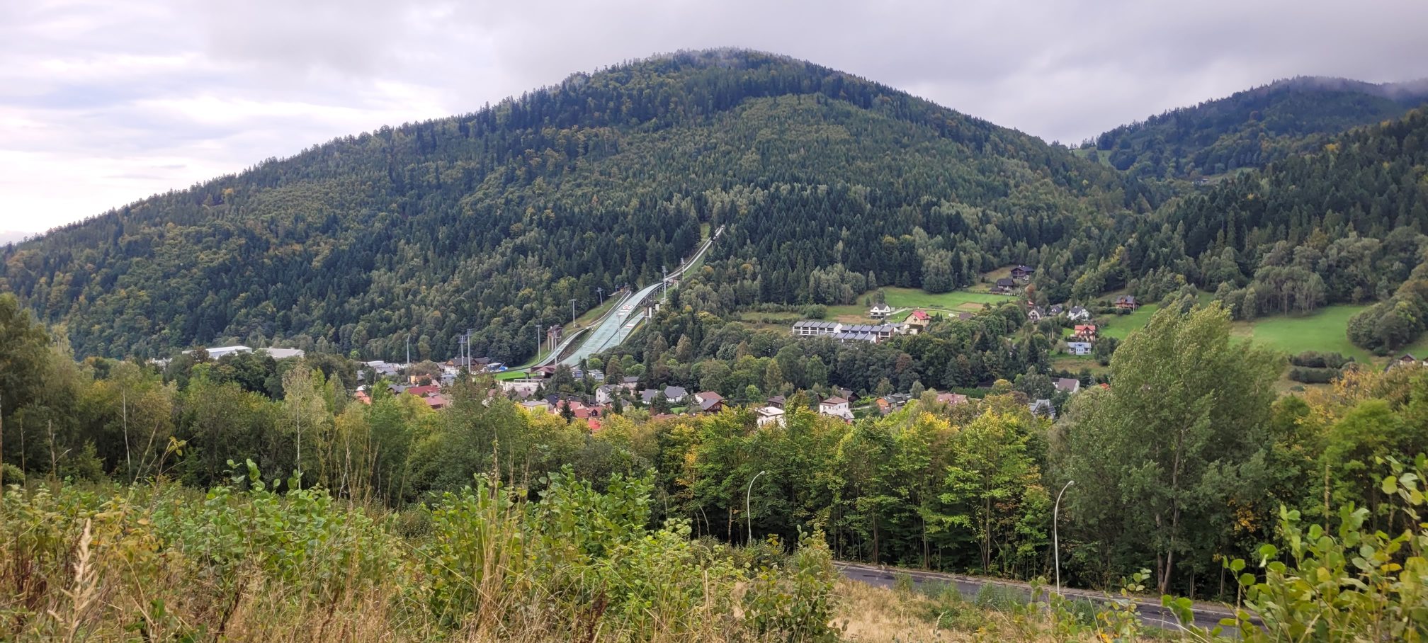W czwartek wyszliśmy z OW Panorama w stronę do Sanktuarium MBKP (dość stromo droga asfaltową), dalej szlakiem czarnym przez Kosajonkę do skrzyżowania szlaków żółtego z czarnym i dalej szlakiem żółtym obok ruin basenu schroniska o nazwie Magóra-Kąpielisko do Schroniska PTTK Klimczok (droga tez stroma) i powrót szlakiem niebieskim / czerwonym / zielonym na Siodło pod Klimczokiem i dalej szlakiem niebieskim powrót do OW Panorama. Długość trasy to około 12 km.